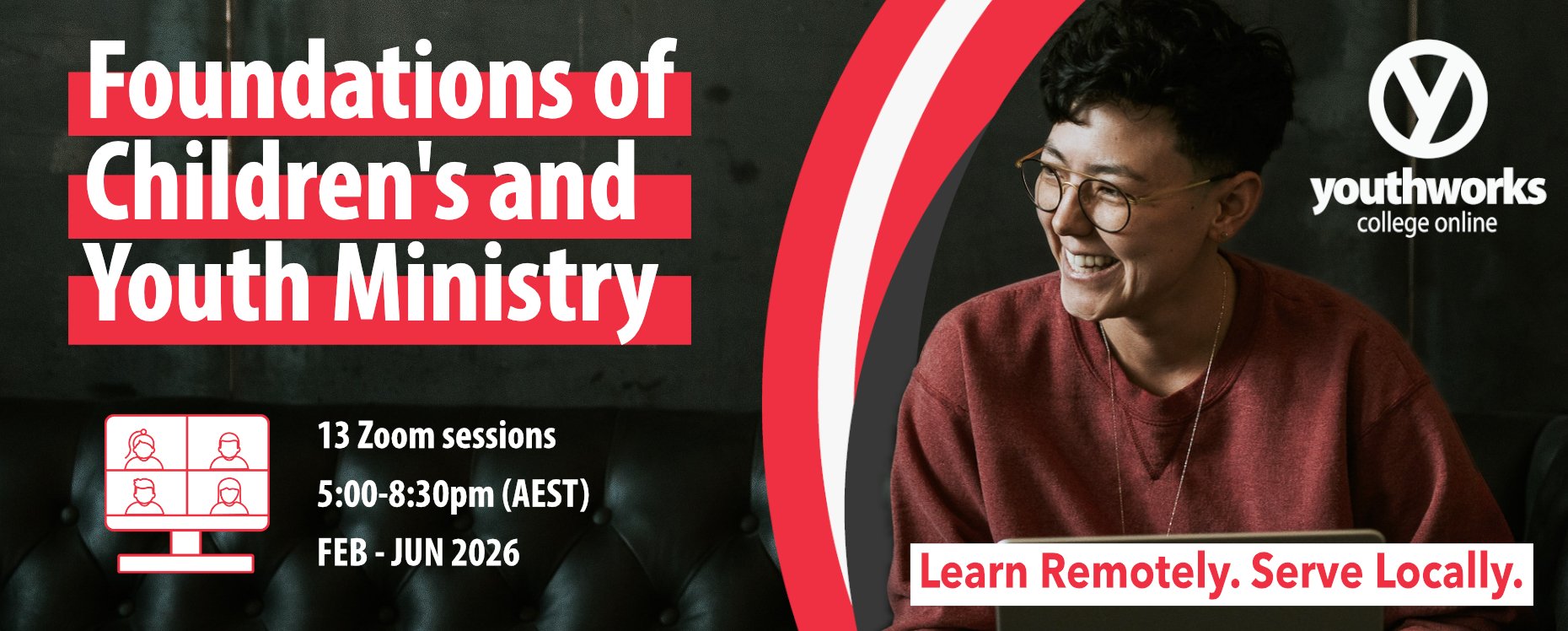 The "Foundations of Children’s and Youth ministry” Online unit is being offered as a series of regular zoom sessions (approx. 13) each week in semester 1. The unit will begin on Tuesday February 24, 2026, from 7:00-8:30pm (AEST) with breaks coordinated for NSW school holidays.